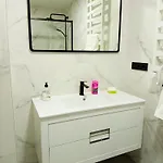 تمّ تجهيز هذه الشقة بحمام يحتوي على مجفف الشعر وملاءات الحمام والمناشف. كما يمكن العثور على البيديت والمرحاض المنفصل والدوش.